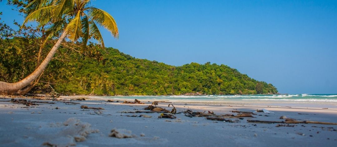 This beach stands out for its soft white sand, gentle waves and calm setting. You’ll see plenty of coconut basket boats pulled onto the sand, used by local fishermen who still work the surrounding waters every day. The atmosphere is slow and soothing, perfect for travellers who prefer space and silence over activity.