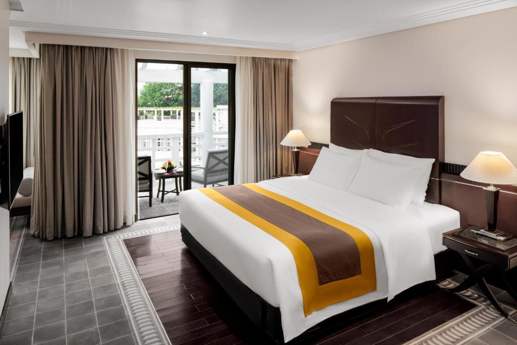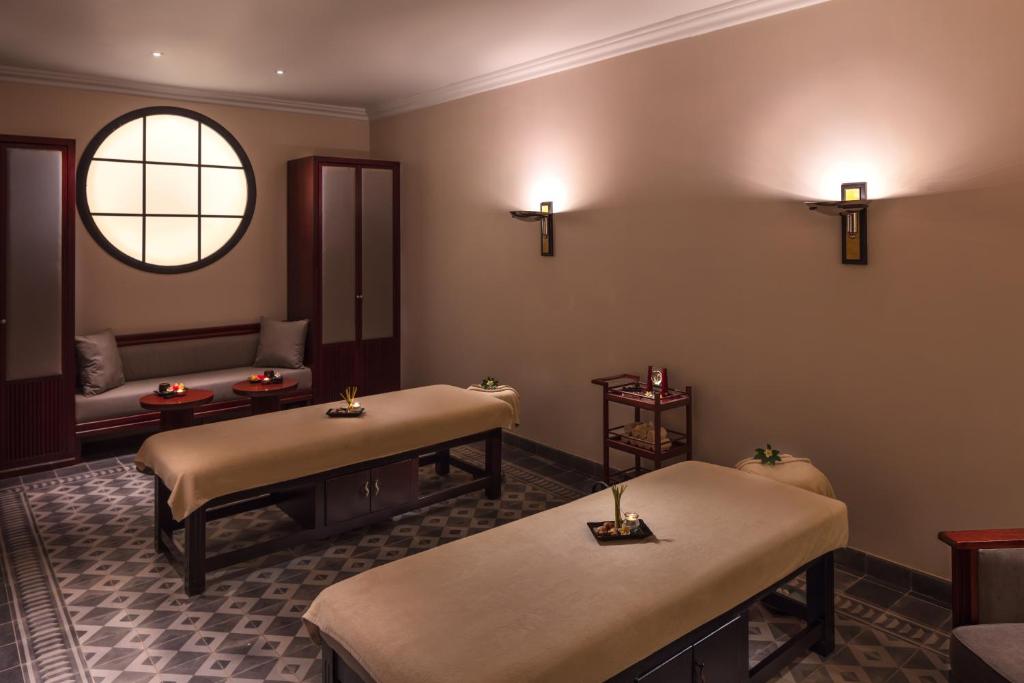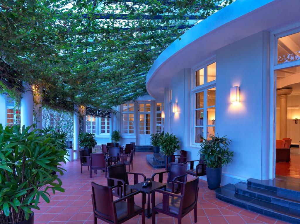Azerai La Residence, Hue is a colonial villa on Perfume River, offering free WiFi, a tennis court, spa, and a fitness center. Rooms feature Art Deco furniture, terraces, city or river views, TV, mini-bar, and private bathrooms. Close to attractions, 0.9 mi from Hue Imperial Citadel. Enjoy spa massages, the library, and complimentary bicycles for exploring. Day trips and car rentals available at the tour desk.