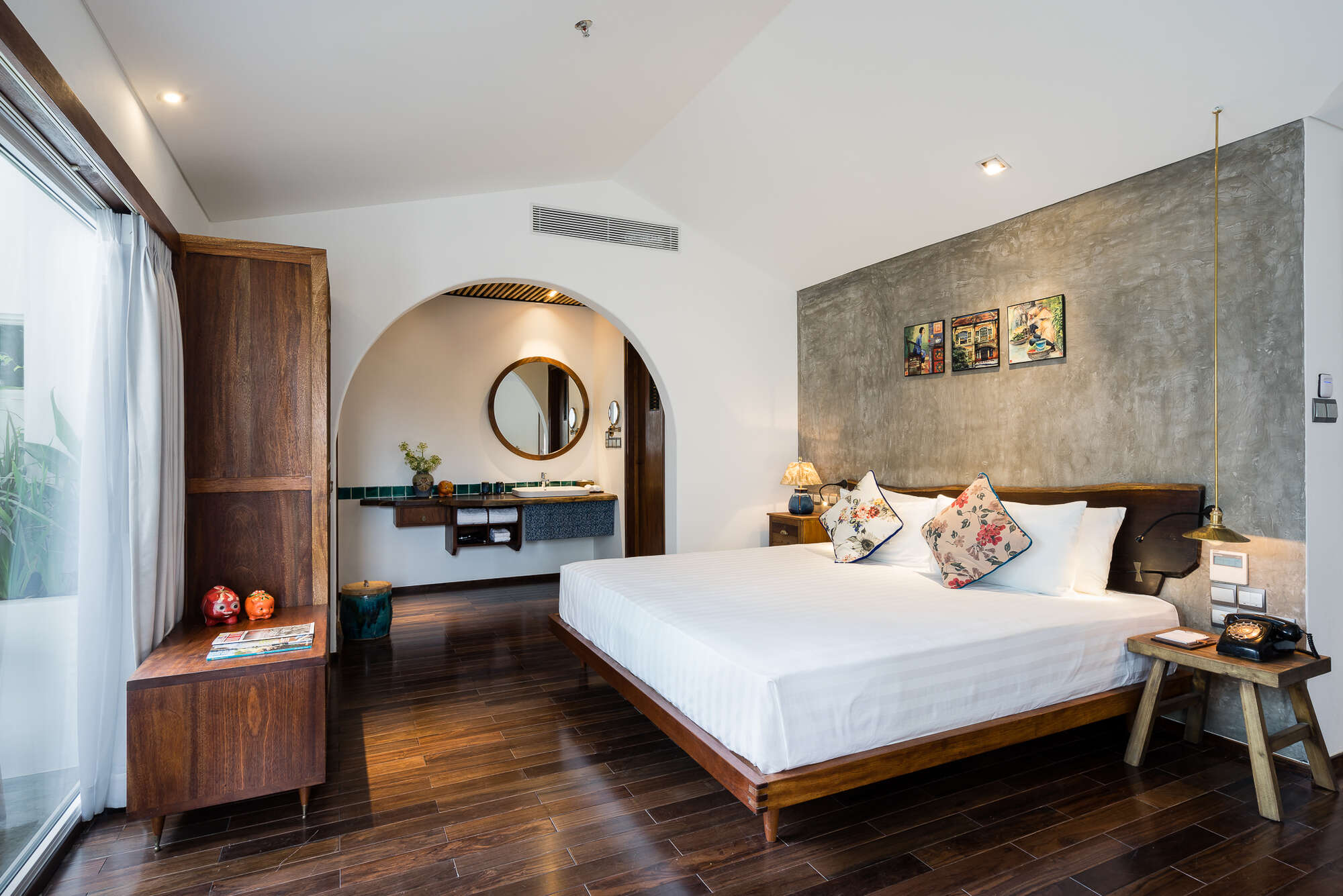 Walking through the doors of The Myst Dong Khoi, you enter a timeless sanctuary where the fragrant scent of ylang-ylang gently cools the air and warm smiles make you feel instantly at home. Blending contemporary comfort with nostalgic charm, the hotel reveals subtle echoes of Saigon’s storied past through stained-glass details, wrought-iron roses, and carefully curated local artefacts.