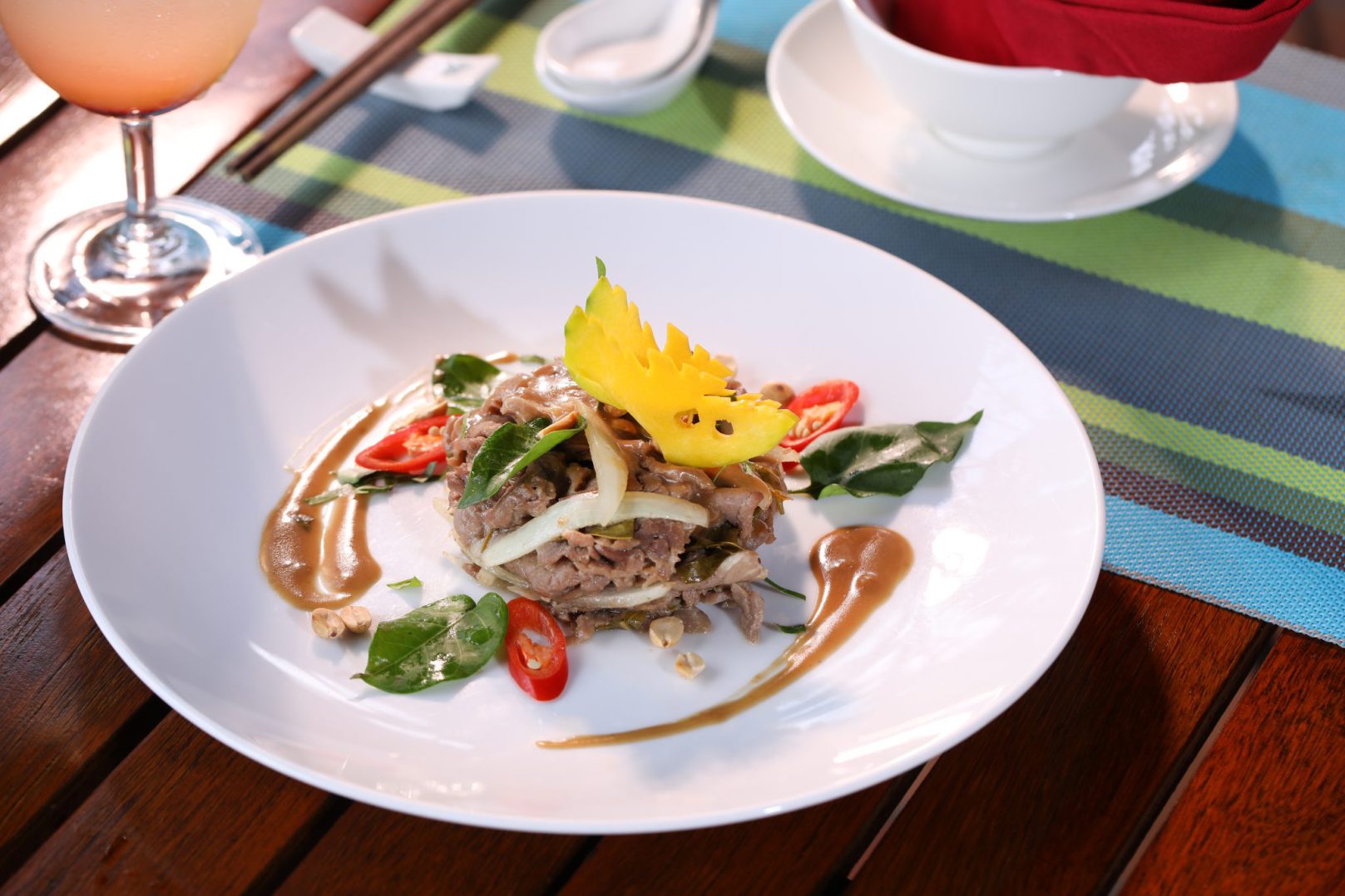 At La Giang Restaurant, savor a selection of Vietnamese specialties alongside Asian and Western favorites, complemented by refreshing drinks in a relaxed and inviting setting.