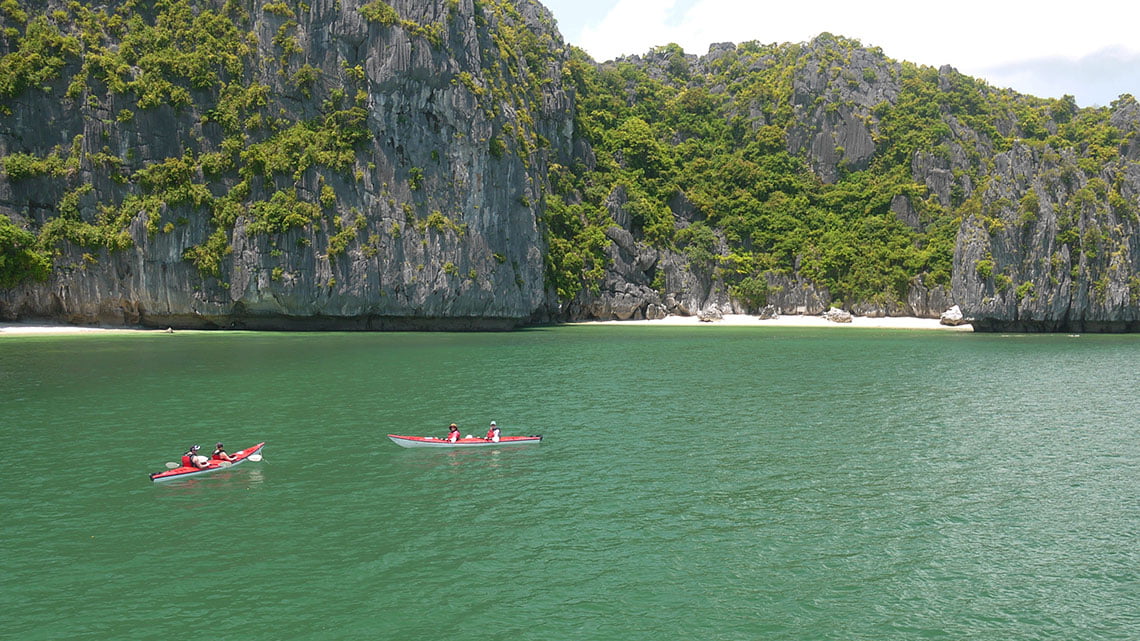 15:30 Visiting Tra Bau area, which is known as an area famous for its unspoiled, poetic natural beauty and attractive seascape of Lan Ha Bay. This is the best time for kayaking to discover the truest beauty of the limestone islands.