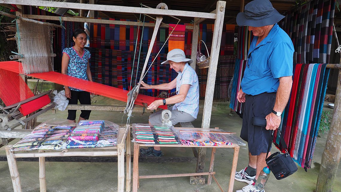 Continue to walk downhill to a local home, where you have a short rest then take your bicycle for a leisurely ride around Lan village. If time permits, you will visit a local family where you can learn about their traditional brocade weaving.