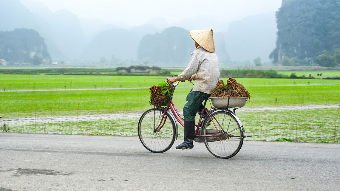 Keep cycling through the rice paddies and to another village to explore more the surrounding landscape. Ride back to the local home, where your driver is waiting for you and take you back to the retreat.